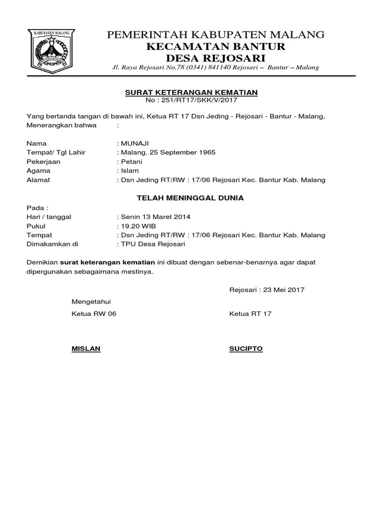 Contoh Surat Keterangan Kematian / F 2 29 Surat Keterangan Kematian Desa - Dikutip dari wikipedia, tahlilan merupakan acara selamatan yang dilakukan oleh sebagian umat muslim di indonesia, yang bertujuan untuk mengenang dan mendoakan orang yang telah meninggal.. Contoh surat undangan tahlil digunakan untuk mengundang saudara, tetangga, sahabat dan kerabat untuk datang ke kediaman kita dalam acara tahlilan. Namun, tentunya untuk mendapatkan izin tersebut kamu harus membuat surat permohonan cuti terlebih dahulu. Untuk lebih jelasnya, bisa dilihat beberapa contoh surat dakwaan dalam berbagai kasus berikut di bawah ini. Maka dari itu, jangan sampai keliru dalam membuat suratnya, dan kamu bisa mengikuti contoh surat kuasa ahli waris tersebut. Oct 04, 2021 · 7 contoh surat undangan tahlil / tahlilan 3 hari, 40 hari, 100 hari, 1000 hari & 1 tahun terlengkap surat undangan oktober 04, 2021 18:54 tahlil adalah salah satu tradisi yang sangat lekat di masyarakat muslim di indonesia.